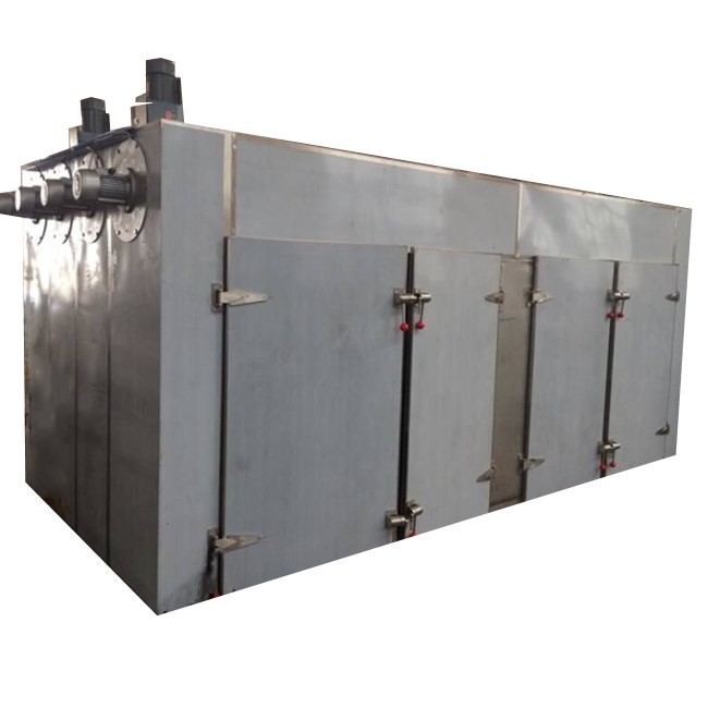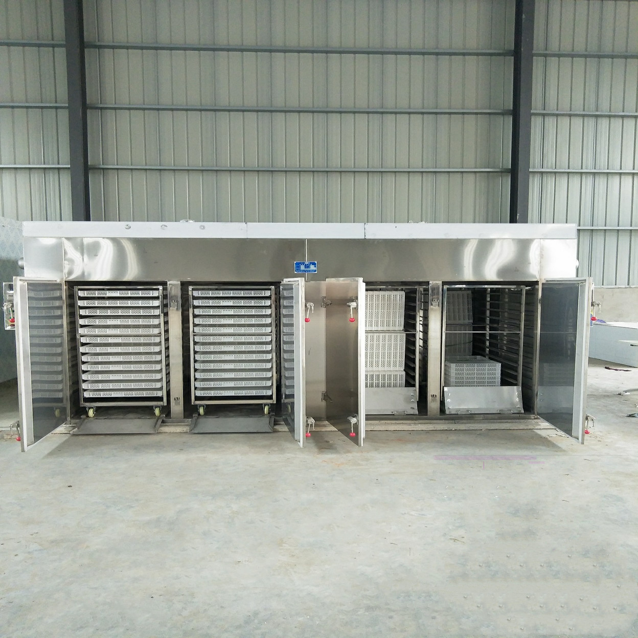 O material de secagem é distribuído às bandejas pelo cliente e para pôr um por um as bandejas sobre o trole, a seguir enviando as no forno. O tamanho da bandeja de aço inoxidável é 460*640*45. Em seguida, encontre o painel de controle e a volta no fã e no calefator de circulação, ajuste a temperatura de secagem e o tempo, e a máquina começará trabalhar. O ar fresco entrará continuamente no forno, com a tubulação de aquecimento em forma de u, a maioria do ar quente está dando um ciclo no forno completamente fechado, para conseguir a economia de energia e a eficiência elevada. Durante o processo de secagem, uma grande quantidade de umidade será gerada, que exige o cliente abrir a tomada superior da umidade e ajustar o tempo da liberação da umidade. O processo de secagem do todo é conveniente, rápido e fácil de operar.