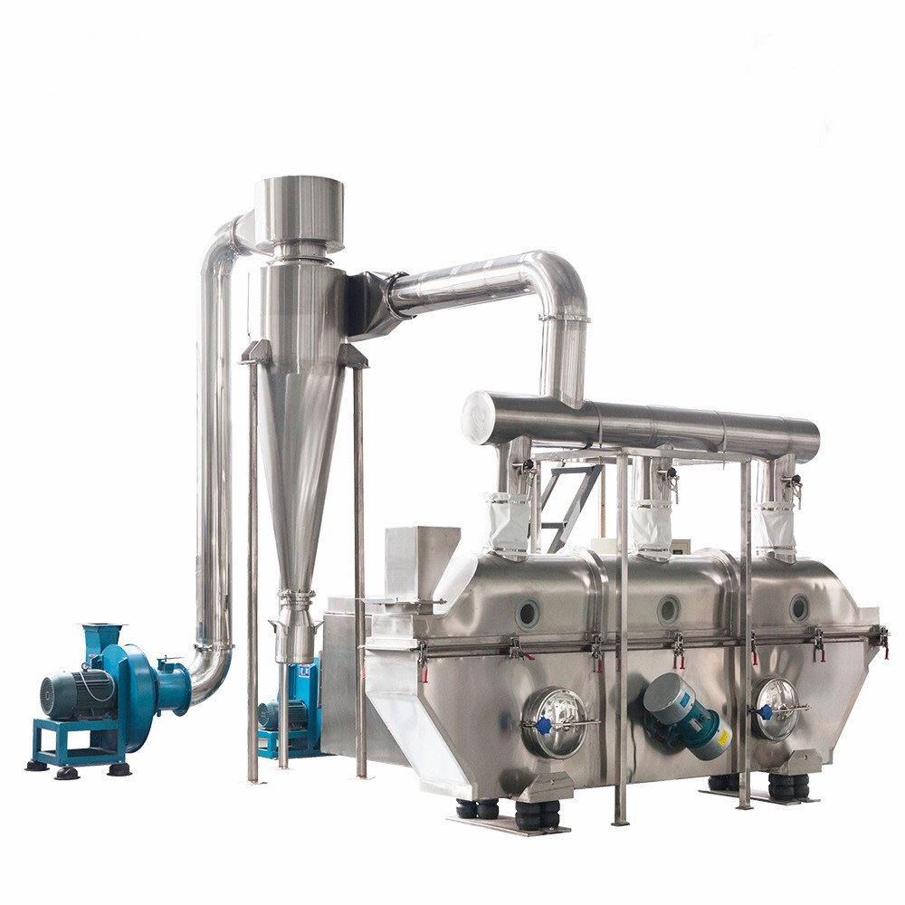 O secador de leito fluidizado de vibração é um tipo do dispositivo de secagem intensificado com objetivo especial. É usado geralmente para a secagem final dos materiais. Porque a fluidificação material é ajudada pela vibração mecânica no processo de secagem, é não somente benéfico à turbulência da camada de limite e ao realce do calor e de transferência maciça, mas igualmente assegura o equipamento de secagem para trabalhar sob as circunstâncias mecânicas do fluxo relativamente estável. Este equipamento tem uma boa função de secagem, mas igualmente de acordo com as necessidades do processo com o material que refrigera, selecionando e transportando processos. Presentemente, foi amplamente utilizado no açúcar, na medicina, no adubo, na indústria química, nos plásticos, nos produtos láteos, na indústria de sal, e nas indústrias da mineração e da metalurgia. A tecnologia é basicamente madura e foi fabricado.