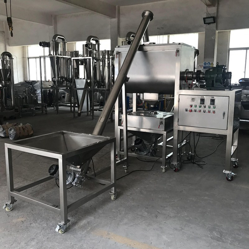 c: Linha de produção: O misturador dobro da fita pode trabalha com transporte de parafuso, funil e enchimento do eixo helicoidal para formar linhas de produção.