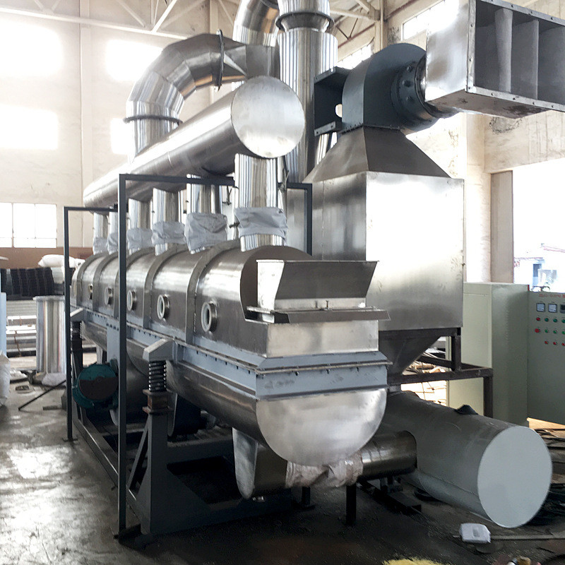 O ar limpo e quente participa na cama fluida através do distribuidor da placa da válvula. A matéria prima molhada alimentada dos formulários do alimentador o estado de ebulição pelo ar quente. Devido ao contato largo entre o ar quente e as matérias primas, o tempo de secagem é curto. O ar entra da parte dianteira da cama, fervendo na cama por diversos minutos, e descarregado do outro lado da cama. A máquina funciona na pressão negativa.