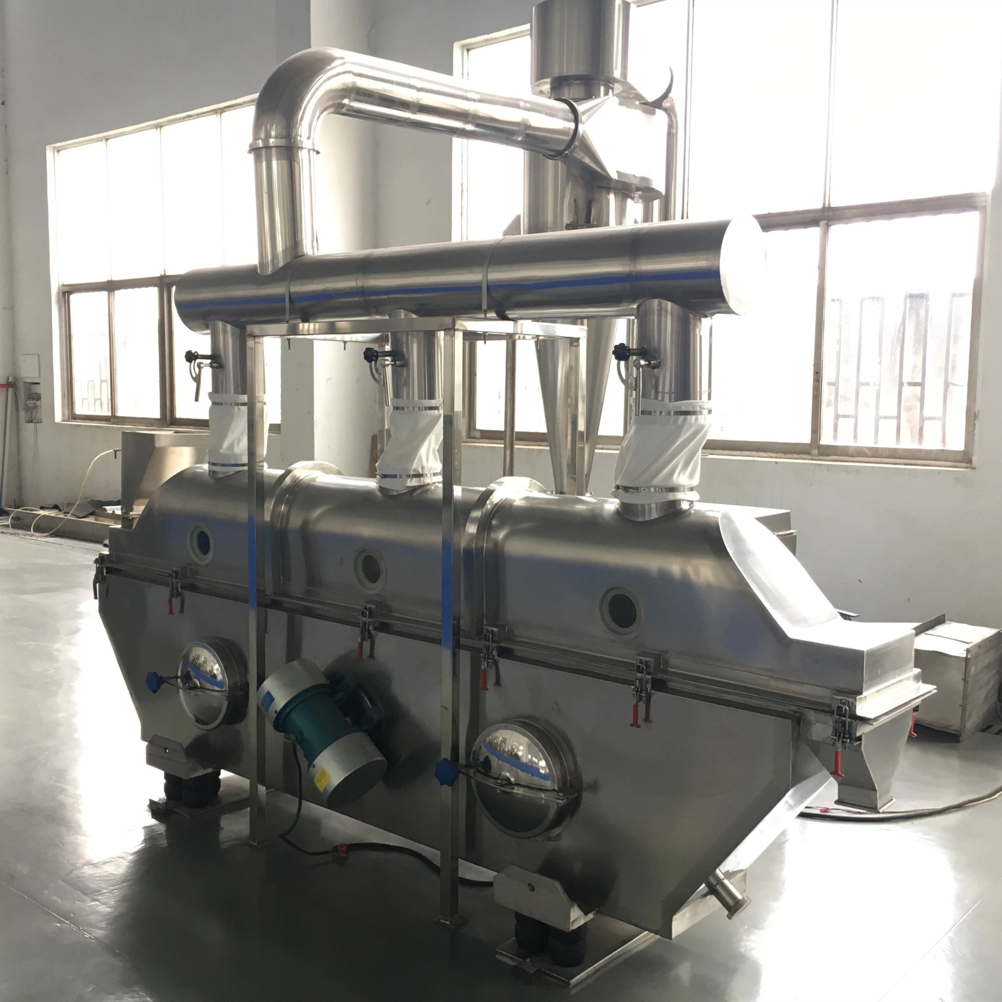 Secador de leito fluidizado industrial da vibração aplicável a químico, a farmacêutico, alimento, vegetais desidratados, alimento, minerais e outros pó das indústrias, operações granuladas dos materiais, as secas, refrigerar e o outro.